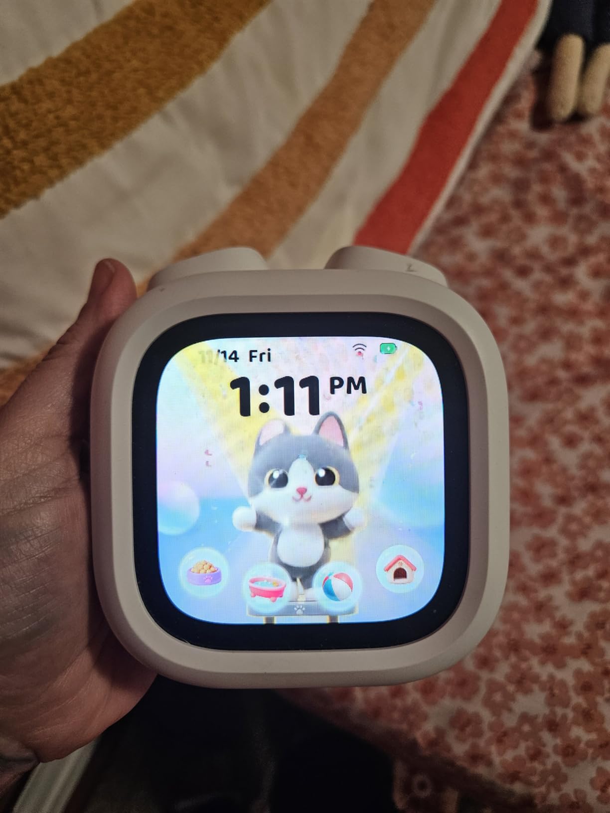 KidyPaw® réunit en un seul appareil plusieurs fonctions du quotidien : réveil, histoires audio, musiques, messages vocaux, rappels de tâches et veilleuse. Votre enfant choisit facilement ce dont il a besoin sur l’écran, tandis que vous gardez la maîtrise de l’organisation depuis votre téléphone.